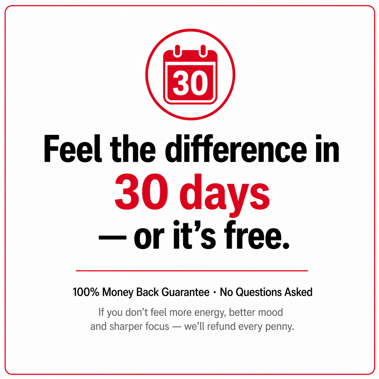 If you don't feel more energy, better mood, and sharper focus within 30 days of taking Bleemm daily, we'll refund every penny. No forms. No questions. No hassle. We're that confident in what's inside the bottle — because we've already shown you the lab results.